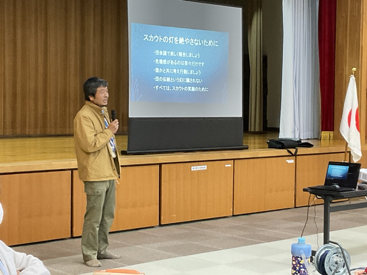 団運営者懇談会を開催しました 指導者関係 2025年11月09日 14 団運営者懇談会を開催しました。「スカウトの灯を絶やさないために」40名ほどの団委員、指導者が参加して頂きました。勉強になりました。